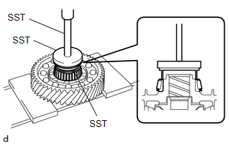 | (a) Using SST and a press, install a new front differential case rear tapered roller bearing (inner race) to the differential case assembly. SST: 09316-20011 SST: 09950-60021 09951-00890 SST: 09950-70010 09951-07200 NOTICE: