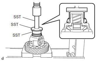 | (a) Using SST and a press, install a new front differential case front tapered roller bearing (inner race) to the differential case assembly. SST: 09316-20011 SST: 09950-60021 09951-00890 SST: 09950-70010 09951-07200 NOTICE:
