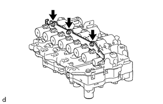 | (a) Install the solenoid lock plate to the transmission valve body assembly with the 3 bolts. Torque: 7.0 N·m {71 kgf·cm, 62 in·lbf} |