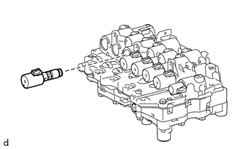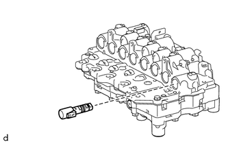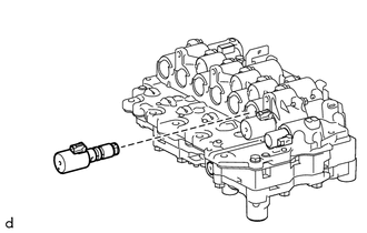 | (a) Coat the manual valve with Toyota Genuine ATF WS and install it to the transmission valve body assembly. |