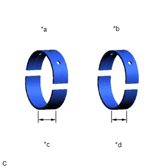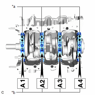 | (a) Clean the main journals and both surfaces of the crankshaft bearings. NOTICE: Crankshaft bearings come in widths of 17.9 mm (0.705 in.) and 20.9 mm (0.823 in.). Install the 20.9 mm (0.823 in.) crankshaft bearings to the No. 1 and No. 4 cylinder block journal positions. Install the 17.9 mm (0.705 in.) crankshaft bearings to the No. 2 and No. 3 positions. |