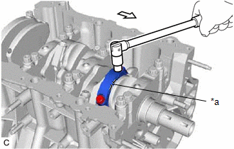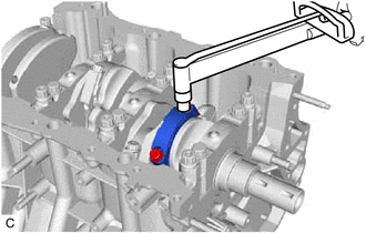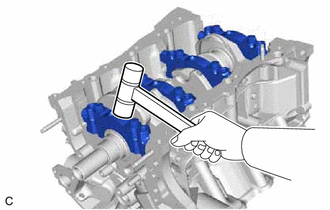 | (f) Using a plastic hammer, lightly tap the crankshaft bearing cap to ensure a proper fit. |