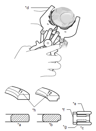 | (b) Using a piston ring expander, install the No. 1 compression ring and No. 2 compression ring as shown in the illustration. NOTICE: