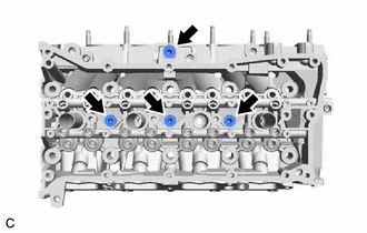 | (b) Using a 6 mm hexagon socket wrench, install the 4 No. 1 straight screw plugs to the cylinder head sub-assembly. Torque: 25 N·m {255 kgf·cm, 18 ft·lbf} |