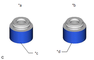| (a) Apply a light coat of engine oil to 16 new valve stem oil seals. NOTICE: Make sure to install each valve stem oil seal to the correct side. Installing an intake valve stem oil seal to the exhaust side or installing an exhaust valve stem oil seal to the intake side can cause installation problems later. HINT: The intake valve stem oil seals are gold and the exhaust valve stem oil seals are gray. |