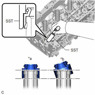 | (b) Using SST, push in the 16 valve stem oil seals. SST: 09201-41020 NOTICE: