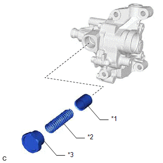 (b) Insert the oil pump relief valve and oil pump relief valve spring into the oil pump cover sub-assembly.