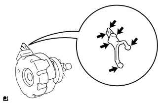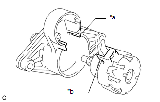 | (a) Align the cutout of the starter yoke assembly with the protrusion of the starter center bearing clutch sub-assembly. |