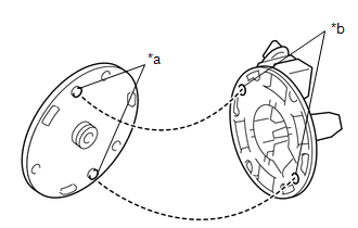 | (a) Install the starter commutator end frame assembly to the starter brush holder assembly as shown in the illustration. HINT: If the parts are not aligned correctly, the through bolt cannot be attached. |