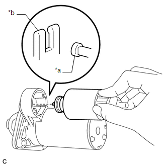 | (b) Spread the brushes on the starter brush holder assembly, and install the starter armature assembly to the starter brush holder assembly. |