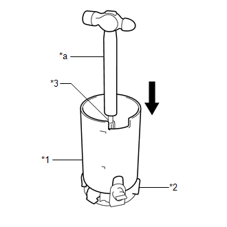 | (a) Install the starter yoke assembly while holding down the starter armature assembly and starter brush holder assembly with the handle of a hammer. HINT: The starter armature assembly will be attracted by the magnetic field of the starter yoke assembly. Hold the starter armature assembly with the handle of the hammer. |
