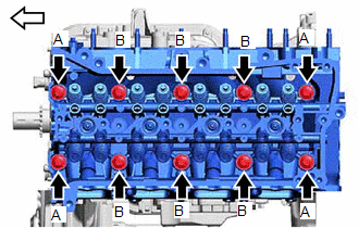 (1) Mark each cylinder head set bolt head with paint as shown in the illustration.