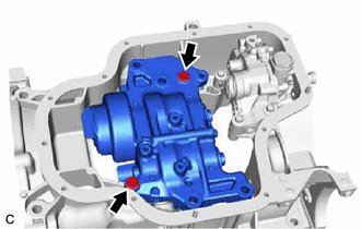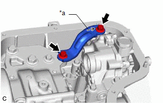 | (a) Install the oil pump bracket with the 2 bolts as shown in the illustration. Torque: 24 N·m {245 kgf·cm, 18 ft·lbf} |