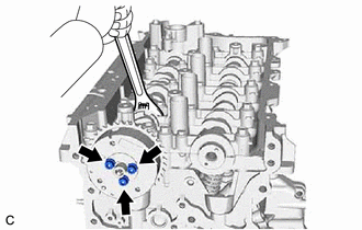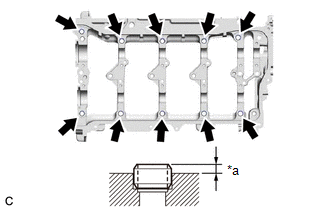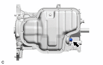 | (a) Using a 10 mm hexagon socket wrench, install the 3 straight screw plugs and 3 new gaskets to the stiffening crankcase assembly. Torque: 44 N·m {449 kgf·cm, 32 ft·lbf} |