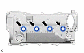 | (a) Install 4 new spark plug tube gaskets to the cylinder head cover sub-assembly. NOTICE: