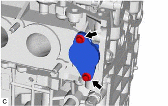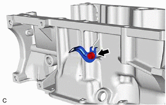 | (a) Using a 12 mm hexagon socket wrench, install the oil filter union to the stiffening crankcase assembly. Torque: 29.5 N·m {301 kgf·cm, 22 ft·lbf} |