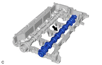 (d) Using a wrench, hold the hexagonal portion of the camshaft.