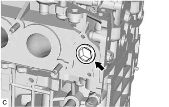 | (b) Using a 10 mm hexagon wrench, install the straight screw plug to the No. 2 timing chain cover assembly. Torque: 40 N·m {408 kgf·cm, 30 ft·lbf} NOTICE: