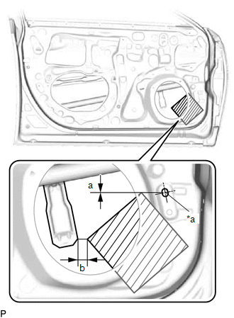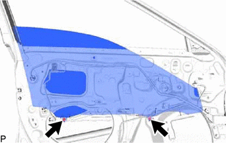 (e) Move the front door window regulator assembly so that the door glass bolt holes can be seen.
