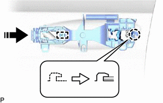 (b) Insert the rear end of the front door outside handle assembly into the front door outside handle frame sub-assembly, then slide the front door outside handle assembly toward the front of the vehicle to install it.