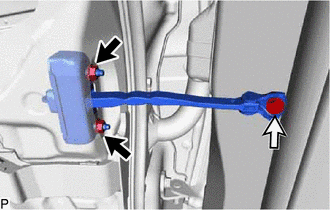 (d) Install the front door check assembly with the 2 nuts and bolt.