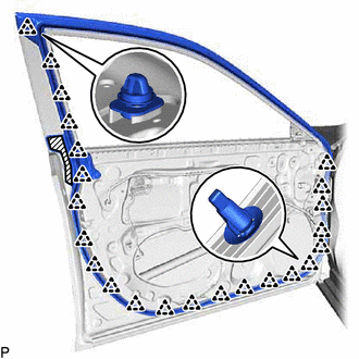 | (a) Install the front door No. 3 weatherstrip with the 4 clips. |