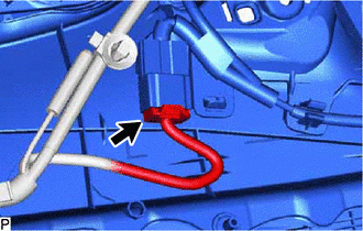 (c) Connect the cable to the negative (-) auxiliary battery terminal.