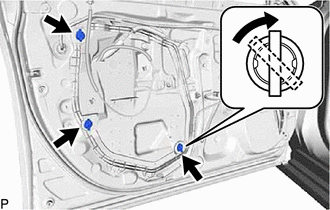 | (b) Insert the 3 front door weatherstrip clips and turn them 45 degrees as shown in the illustration to install them. |