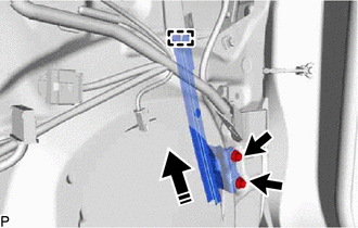 | (c) Engage the 2 clips to connect the front door weatherstrip as shown in the illustration. |