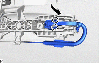 (b) Insert the rear end of the front door outside handle assembly into the front door outside handle frame sub-assembly, then slide the front door outside handle assembly toward the front of the vehicle to install it.