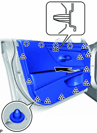 | (a) Engage the 4 claws to install 2 new front door panel cushions. |