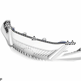 | (b) Install the radiator grille garnish sub-assembly LH with the 3 outside moulding retainers and 3 screws. |