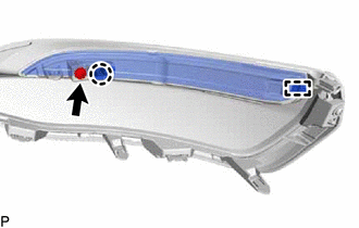 (c) Engage the guide and pin as shown in the illustration to temporarily install the rear bumper upper retainer LH and rear combination light lens and body LH as a set.