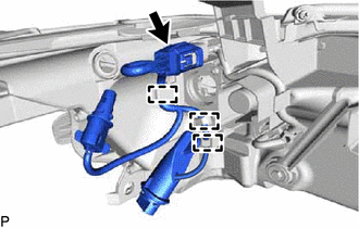 | (a) Engage the 3 clamps to install the headlight cord. |