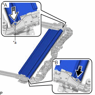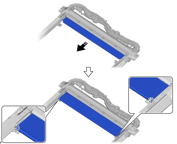 | (d) Install the sliding roof sunshade plate. HINT: Use the same procedure for the RH side and LH side. |