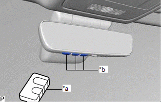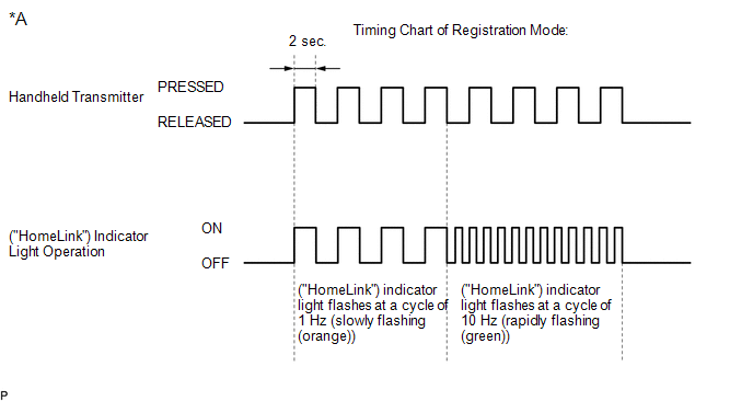 | (1) Step 1: Select a garage door opener ("HomeLink") switch for transmitter code registration and check that the ("HomeLink") indicator light flashes. HINT: Perform step 3 within 60 seconds of step 1, or the indicator light will stop flashing and programming will not be able to be completed. |