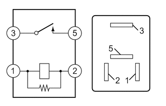 | (a) Check the resistance. (1) Measure the resistance according to the value(s) in the table below. Standard Resistance: | Tester Connection | Condition | Specified Condition | | 3 - 5 | Battery voltage not applied to terminals 1 and 2 | 10 kΩ or higher | | Battery voltage applied to terminals 1 and 2 | Below 1 Ω | If the result is not as specified, replace the ST relay. | |
