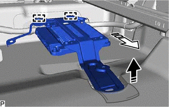 (e) Disengage the 2 guides and remove the parking assist ECU as shown in the illustration.