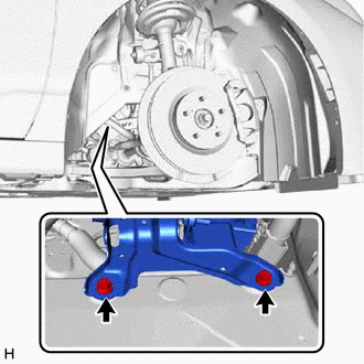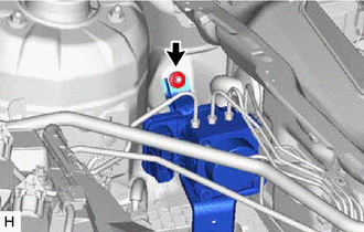 | (e) Remove the 2 bolts. HINT: Insert the tool from the bottom of the vehicle. |