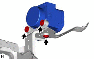 | (a) Remove the 3 bolts and brake actuator assembly from the brake actuator bracket assembly. NOTICE: