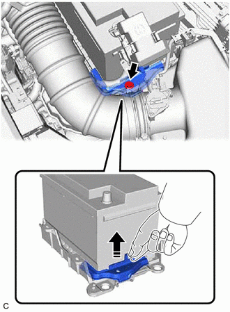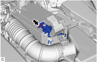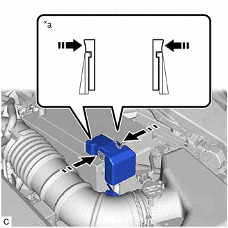 (a) Disengage the 2 claws and remove the battery terminal cap from the positive (+) battery terminal in the order shown in the illustration.
