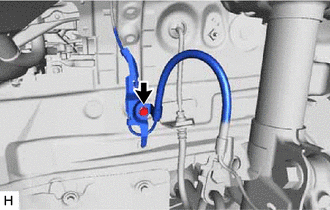 | (e) Remove the bolt and separate the front flexible hose and sensor clamp. | |