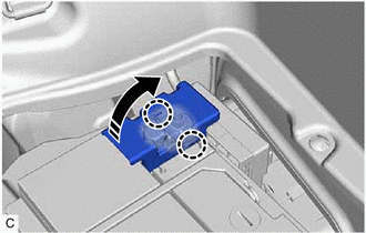 (a) Disengage the 2 claws and open the battery terminal connector cover in the order shown in the illustration.