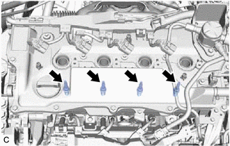 (a) Remove the 4 spark plugs from the cylinder head sub-assembly. NOTICE: If a spark plug has been struck or dropped, replace it. HINT: Arrange the removed parts in the correct order. |