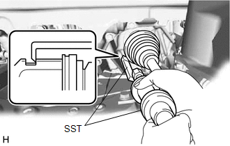 | (a) Using SST, remove the front drive shaft assembly LH. SST: 09520-01011 SST: 09520-20010 09521-02010 09521-02040 09521-02060 NOTICE: