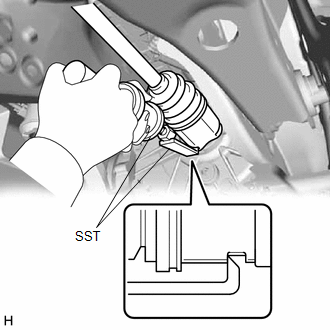 | (a) Using SST, remove the rear drive shaft assembly LH from the rear differential carrier assembly. SST: 09520-01011 SST: 09520-20010 09521-02010 09521-02040 09521-02060 NOTICE: