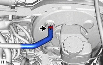 (b) Slide the clip and disconnect the union to check valve hose from the brake booster assembly. |