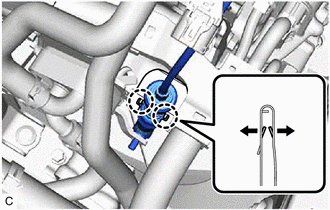 | (d) Using a screwdriver, disengage the 2 claws and remove the clip from the transmission control cable assembly. |