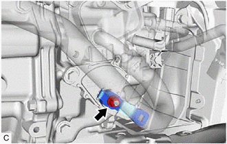 | (e) Remove the 2 bolts and shift lever position sensor from the hybrid vehicle transaxle assembly. |