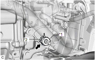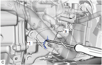 | (c) Using a screwdriver, disengage the 4 claws and disconnect the transmission control cable assembly with the clip from the No. 1 transmission control cable bracket. |